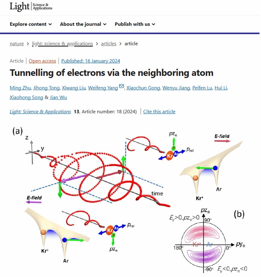 、理论物理研究中心杨玮枫教授所在团队在光学领域顶级期刊《Light: Science & Applications》发表题为《Tunnelling of electrons via the neighboring atom》的论文。该论文以欧乐影院