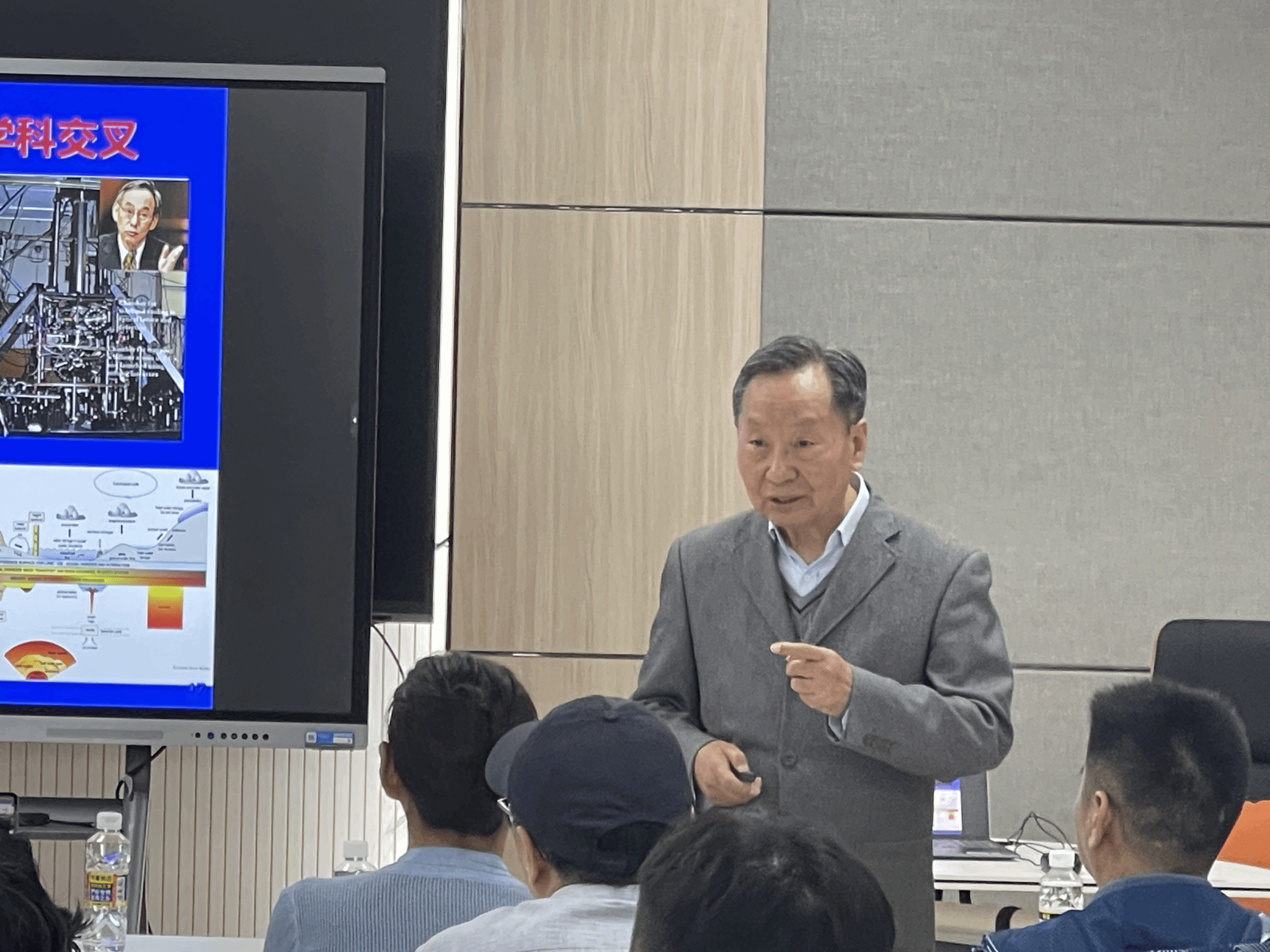 2023年12月1日下午,叶朝辉院士应邀为欧乐影院 师生作题为“精密测量是物理的驱动力”的主题报告,讲述精密测量在物理学中的发展核心作用以及我国在精密测量方向的近期成果。报告由理论物理研究中心主任蔡庆宇研究员主持,海南师范大学陈相松校长、彭鸿雁院长等一行6人参加了报告会。