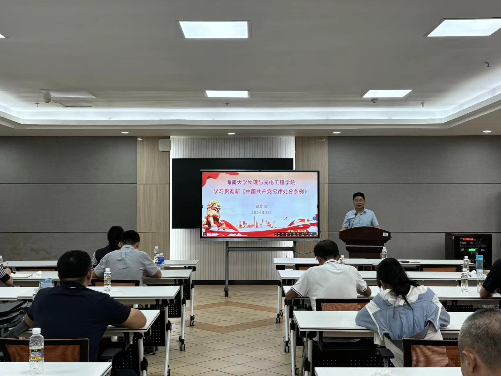 黄文强阐述了党纪学习教育的重要意义和把握《中国共产党纪律处分条例》主旨要义的方法。他强调,全体党员要把学习贯彻《中国共产党纪律处分条例》作为重要的政治任务。他强调,要以严明的纪律推进党的自我革命,不断提升党员干部的政治素养和拒腐防变能力;要将廉洁自律内化于心、外化于行;要坚定理想信念、增强宗旨意识、严格遵守法律法规,切实以优良纪律作风保障学院的高质量发展。