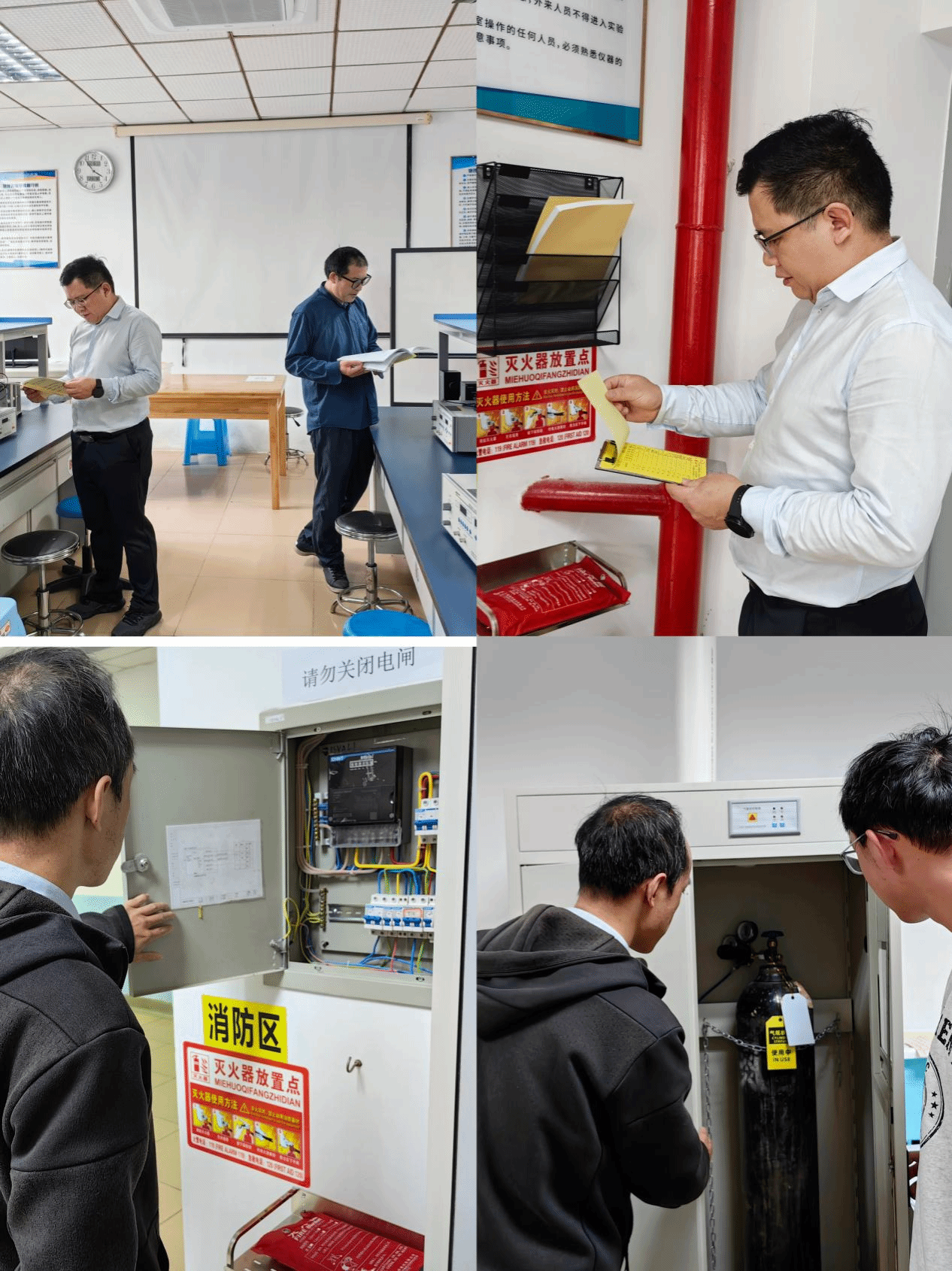 2024年寒假来临之际,欧乐影院 在庾名槐副院长带领下,依据《高等学校实验室安全检查项目表(2023 年)》要求,在1月22日对学院所有实验室进行全面的安全检查,重点检查了消防设施安全、气瓶使用安全、实验仪器使用安全以及门窗安全等各项安全问题,针对发现的问题进行详细指导;同时强调实验室应把安全摆在各项工作的首位,寒假期间采取有效防范措施,消除各类隐患,保障学院教学和科研实验室安全!