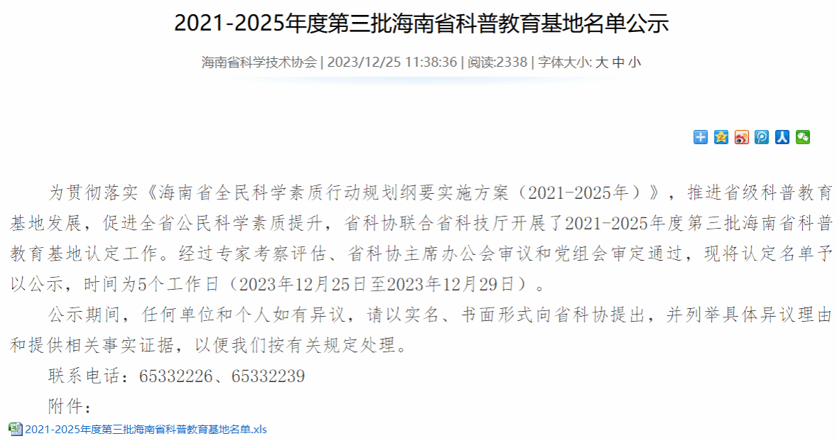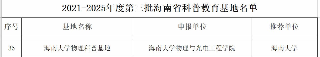 近日,海南省科学技术协会公布了2021-2025年度第三批海南省科普教育基地认定名单,欧乐影院 申报的“欧乐影院 物理科普基地”成功被认定为海南省科普教育基地。