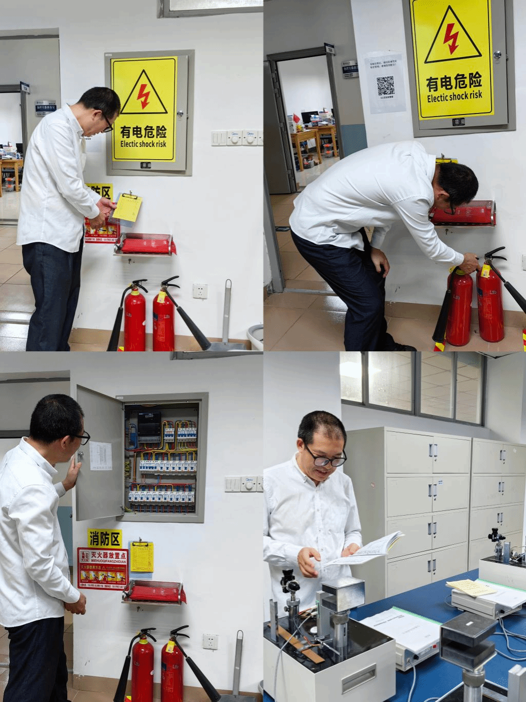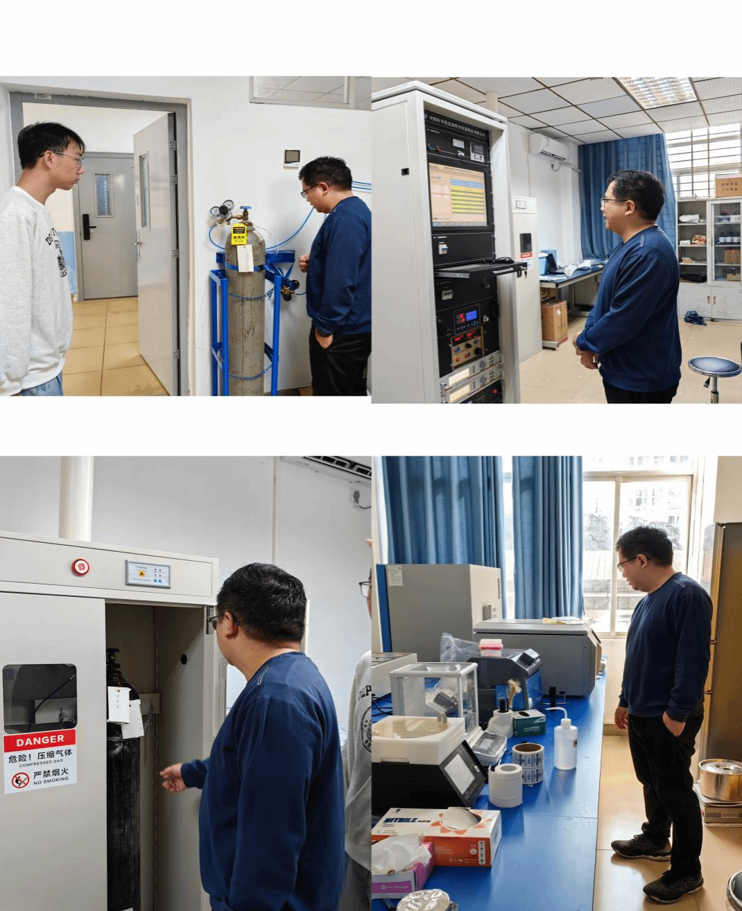 扎实做好实验室安全工作,切实筑牢校园安全防线,保障实验教学顺利开展,2023年1124我院在庾名槐院长、基础物理实验教学中心主任陈文钦带领进行实验室安全检查实验室相关人员参加了本次检查工作。此次检查对实验室危险化学品使用安全、气瓶使用安全高风险设备使用安全等进行了重点检查实验室设备安全、用电安全、消防安全等进行了综合检查
