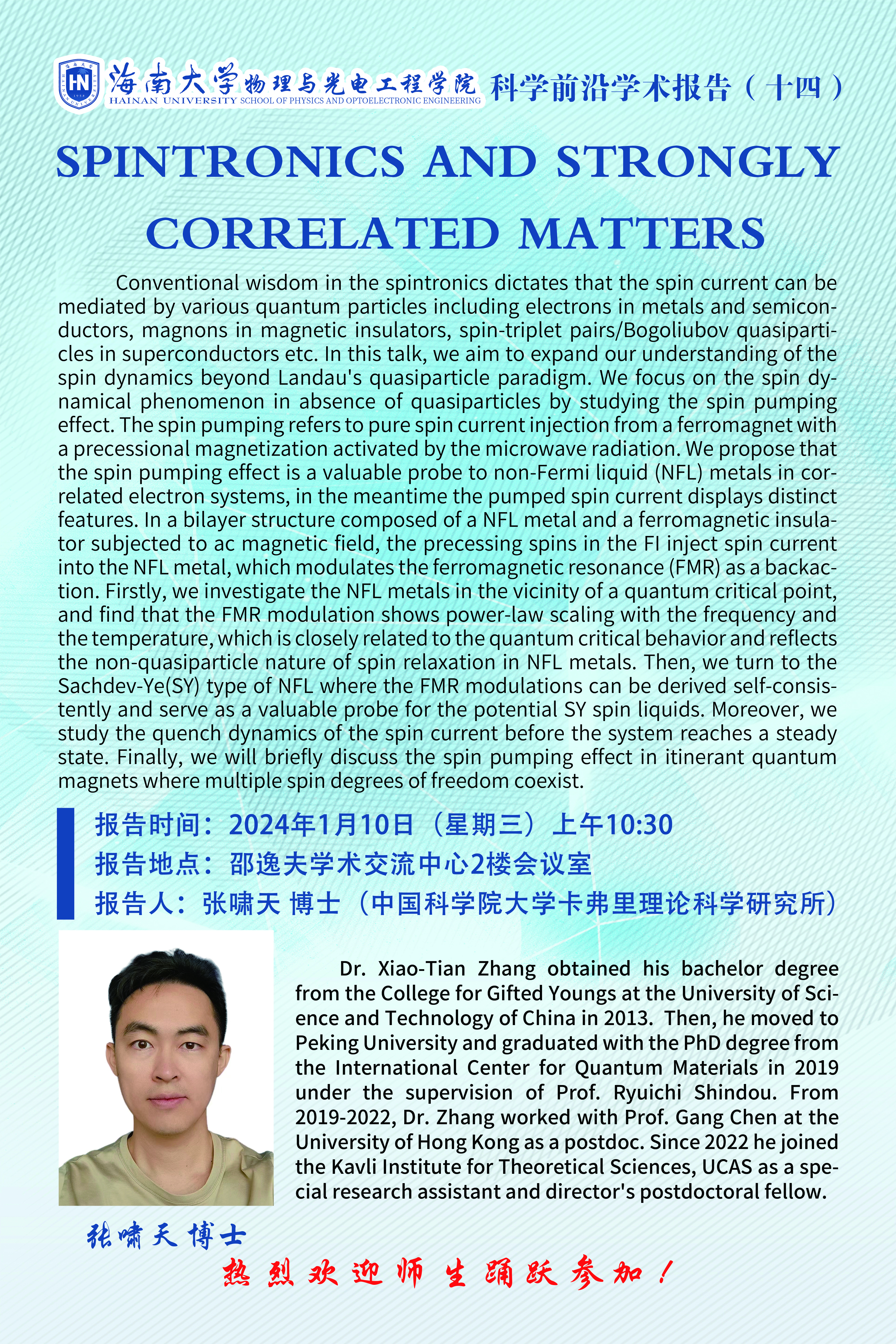 科学前沿学术报告(十四):SPINTRONICS AND STRONGLY CORRELATED MATTERS